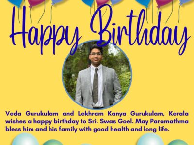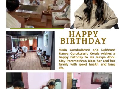Namaste, Veda Gurukulamm and Lekhram Kanya Gurukulam, Kerala wishes a happy birthday to Ms. Kavya Abbi, the Grand daughter of Smt. Manju Abhi. May Paramathma bless her and his family with good heaRead More