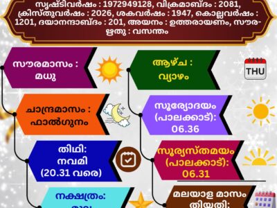 🕉 (09.03.2026) സങ്കല്പ പാഠം 🕉 ഓം തത്സത് ശ്രീ ബ്രഹ്മണോ ദ്വിതീയേ പരാർധേ ശ്വേതവാരാഹRead More
