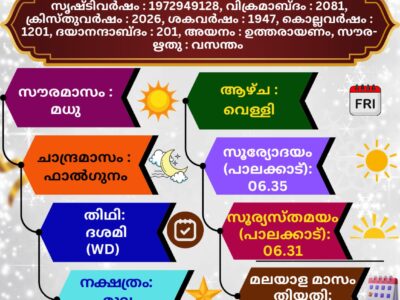 🕉 (10.03.2026) സങ്കല്പ പാഠം 🕉 ഓം തത്സത് ശ്രീ ബ്രഹ്മണോ ദ്വിതീയേ പരാർധേ ശ്വേതവാRead More