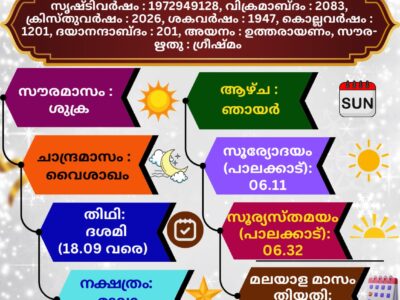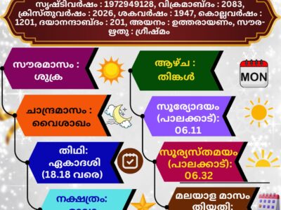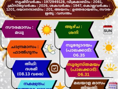 ഓം തത്സത് ശ്രീ ബ്രഹ്മണോ ദ്വിതീയേ പരാർധേ ശ്വേതവാരാഹകൽപേ സപ്തമേ വൈവസ്വതേ മRead More