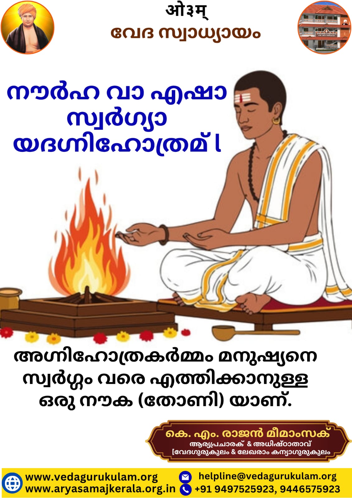 ✍️ കെ. എം. രാജൻ മീമാംസക് നൗർഹ വാ എഷാ സ്വർഗ്യാ യദഗ്നിഹോത്രമ് l അഗ്നിഹോത്രകർമ്മം മനുഷ്യനെ സ്വർഗ്ഗം വരെ എത്തിക്കാനുള്ള ഒരു നൗക (തോണി) യാണ്. 🙏 കെ. എം. രാRead More…