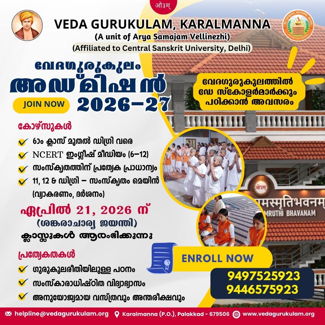 Admissions Open | Academic Year 2026–2027 Our Academic & Vedic Courses At Veda Gurukulam, we offer a unique blend of authentic Vedic education and structured academic learning, nurturing character, discipline, and cultural confidence in every student. • Vedic Studies with Central Sanskrit University (CSU)(Formal Vedic education from Class 6 to Degree level, following CSU-approvedRead More…