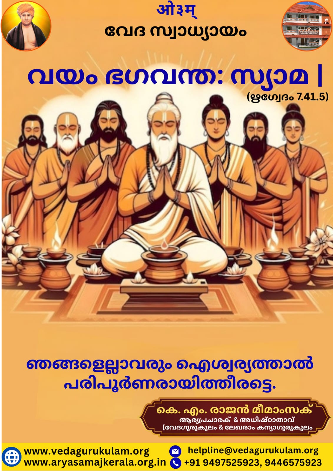 ✍️ കെ. എം. രാജൻ മീമാംസക് വയം ഭഗവന്ത: സ്യാമ l(ഋഗ്വേദം 7.41.5) ഞങ്ങളെല്ലാവരും ഐശ്വര്യത്താൽ പരിപൂർണരായിത്തീരട്ടെ. 🙏 കെ. എം. രാജൻ മീമാംസക്ആര്യപ്രചാരകൻ & അRead More…
