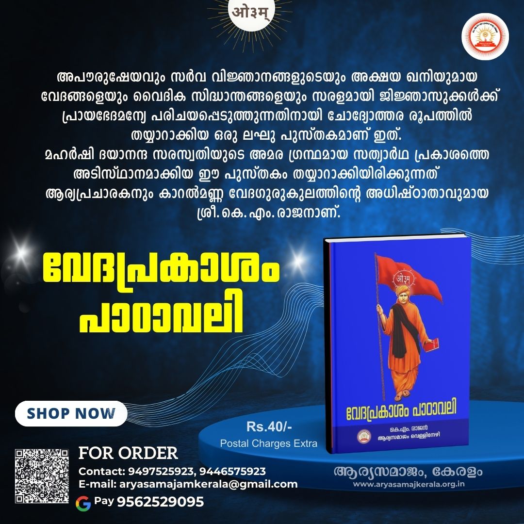 LAUNCH OF FIRST EVER MALAYALAM ARYA SAMAJ ONLINE BOOK STORE Today marks a special day for us at Arya Samajam Kerala as we proudly announce the launch of our Vedic Bookstore site! Just in time for Vijayadashami, a day that symbolizes the triumph of good over evil, we invite you to explore our collection of inspiring books and resources. Stay tuned for more updates and get ready to diRead More…