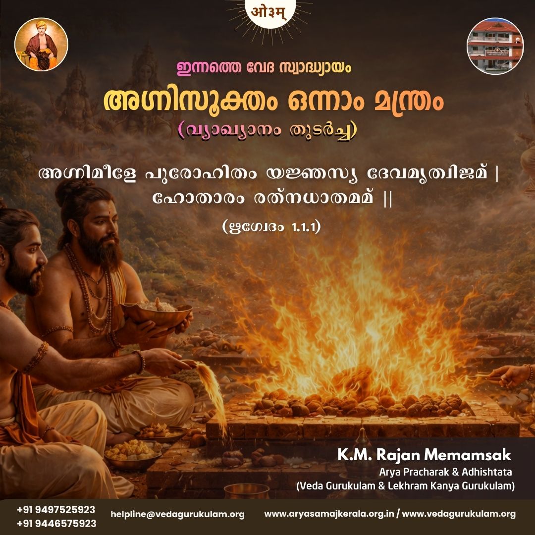 അഗ്നിസൂക്തം ഒന്നാം മന്ത്രം വ്യാഖ്യാനം (തുടർച്ച) ✍️ കെ. എം. രാജൻ മീമാംസക് പ്രശാസിതാരം സർവ്വേഷാമണീയാംസമണോരപി |രുക്മാഭം സ്വപ്നധീഗമ്യം വിദ്യാത് തം പുRead More…