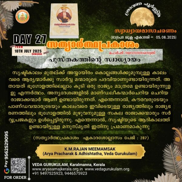 വൈദിക പർവങ്ങളും അനുഷ്ഠാനങ്ങളും ശാസ്ത്രാനുകൂലമായ ശരിയായ സമയത്ത് ആചരിച്ചാൽ മാത്രമേ ഉദ്ദേശിക്കുന്ന ഫലസിദ്ധിയുണ്ടാവുകയുള്ളൂ.