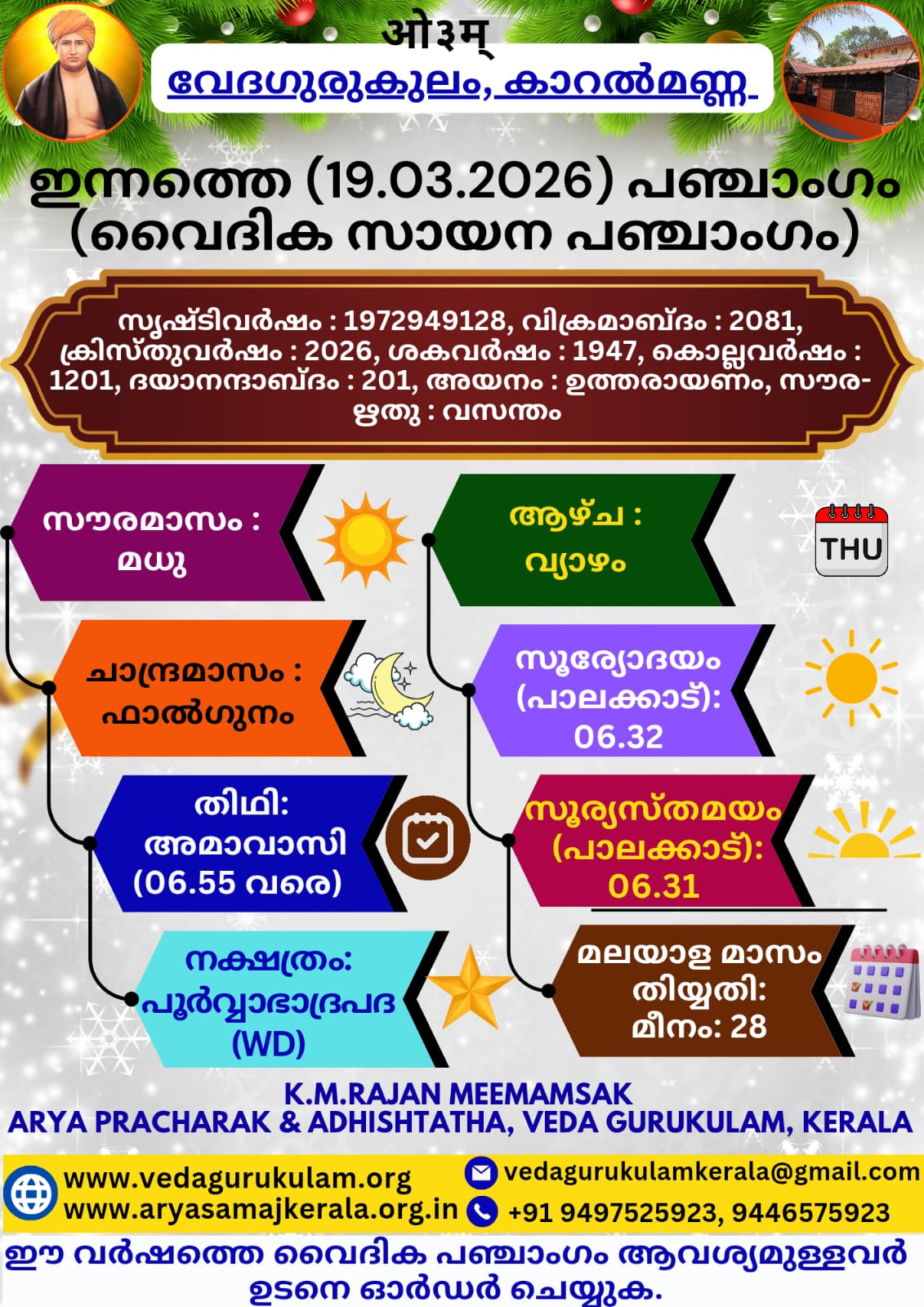 ഇന്നത്തെ (19.03.2026)പഞ്ചാംഗം