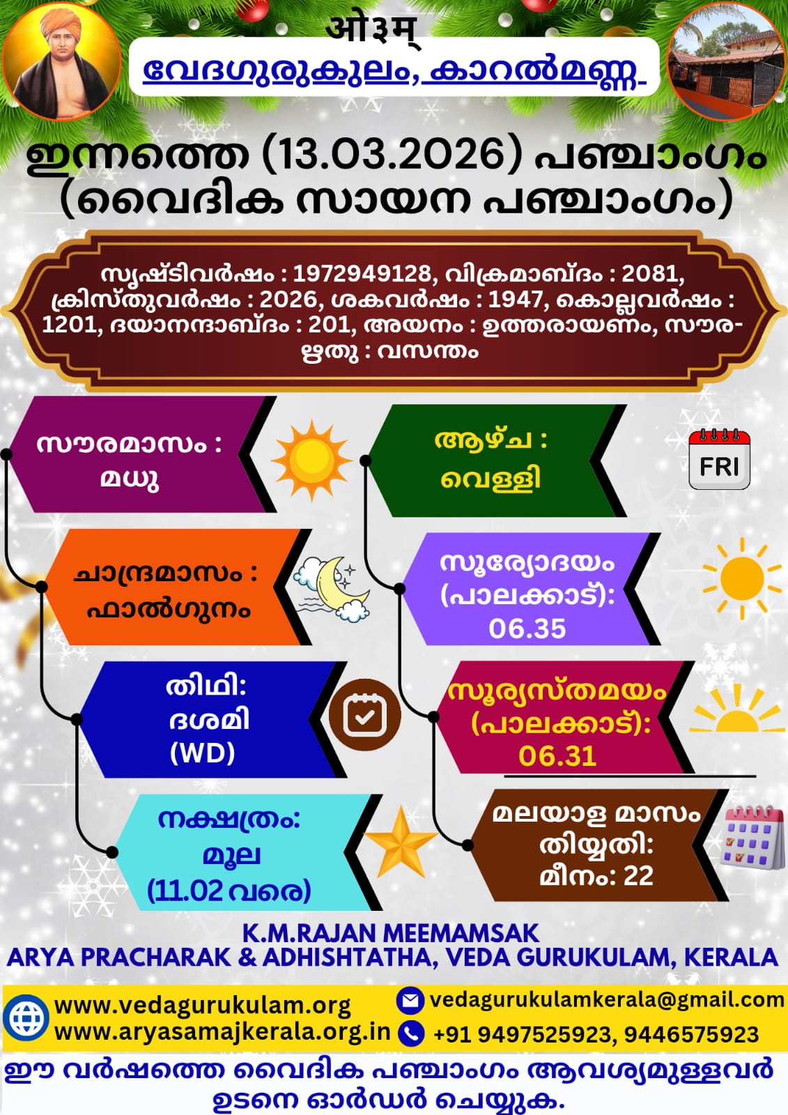 ഇന്നത്തെ (13.03.2026)പഞ്ചാംഗം