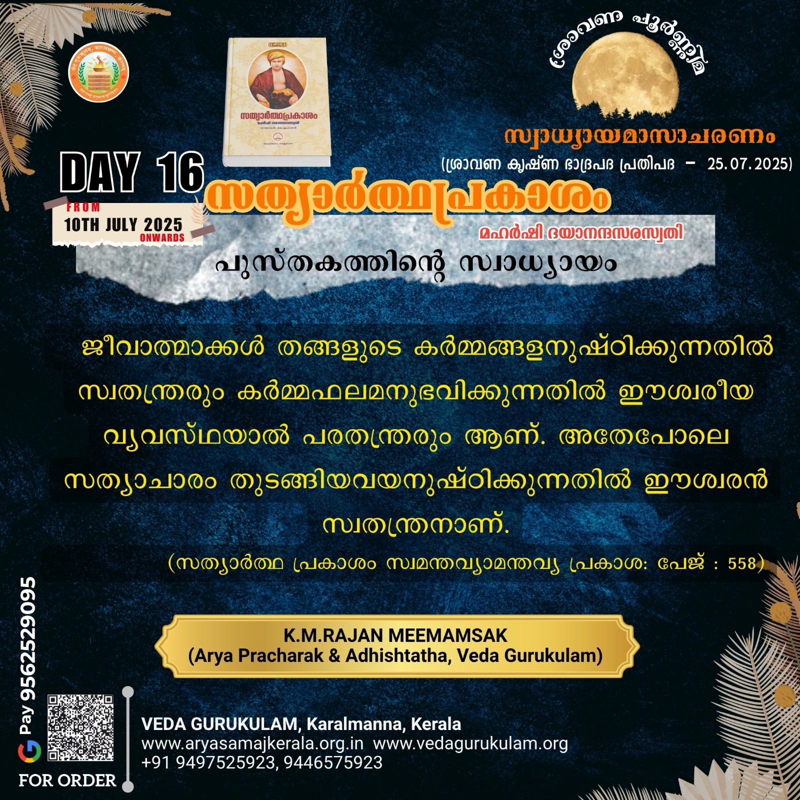 സത്യാർത്ഥപ്രകാശം സ്വാധ്യായം – പതിനാറാം ദിനം (ശ്രാവണ കൃഷ്ണ ഭാദ്രപദ പ്രതിപദ – 25.07.2025)