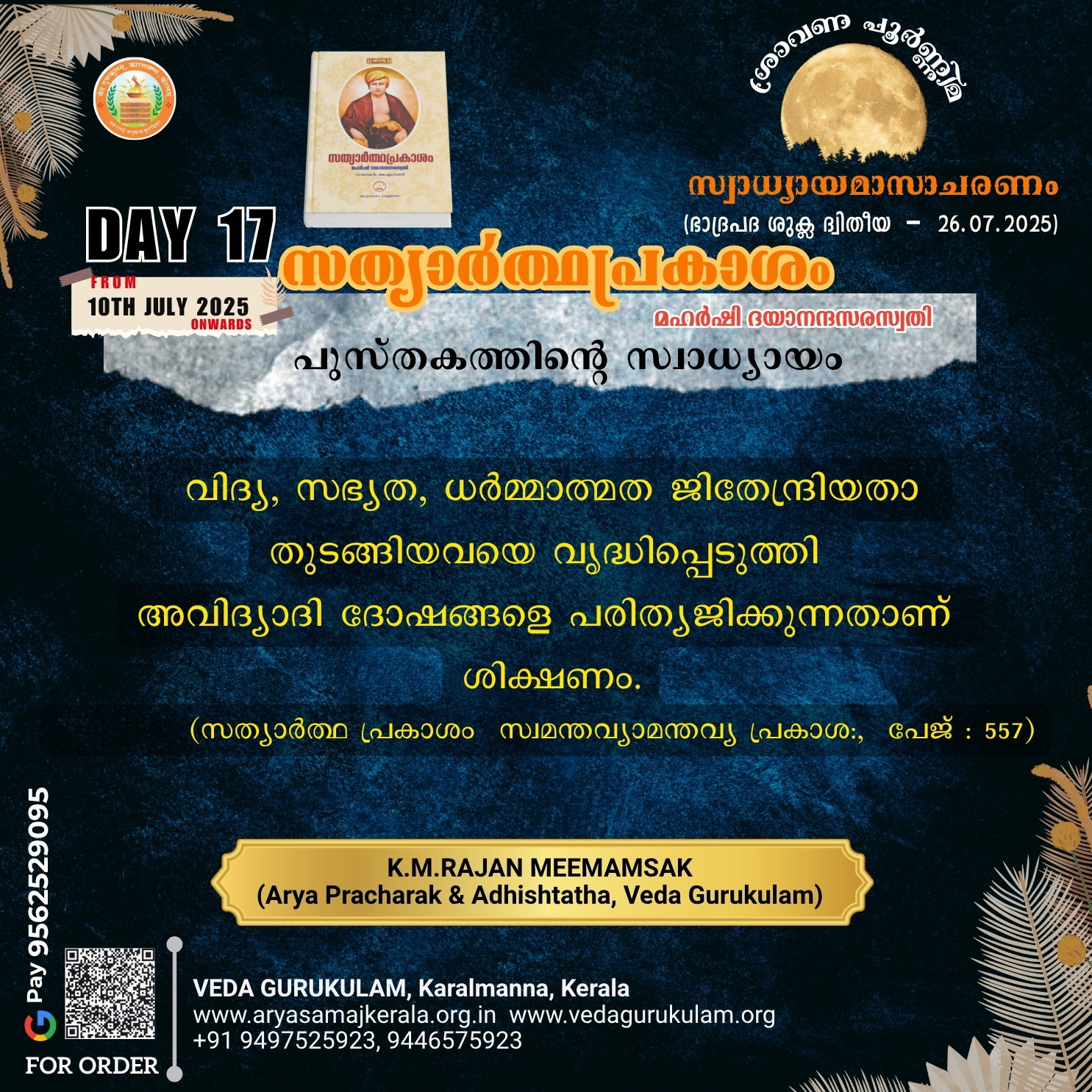 സത്യാർത്ഥപ്രകാശം സ്വാധ്യായം – പതിനേഴാം ദിനം (ഭാദ്രപദ ശുക്ല ദ്വിതീയ – 26.07.2025)