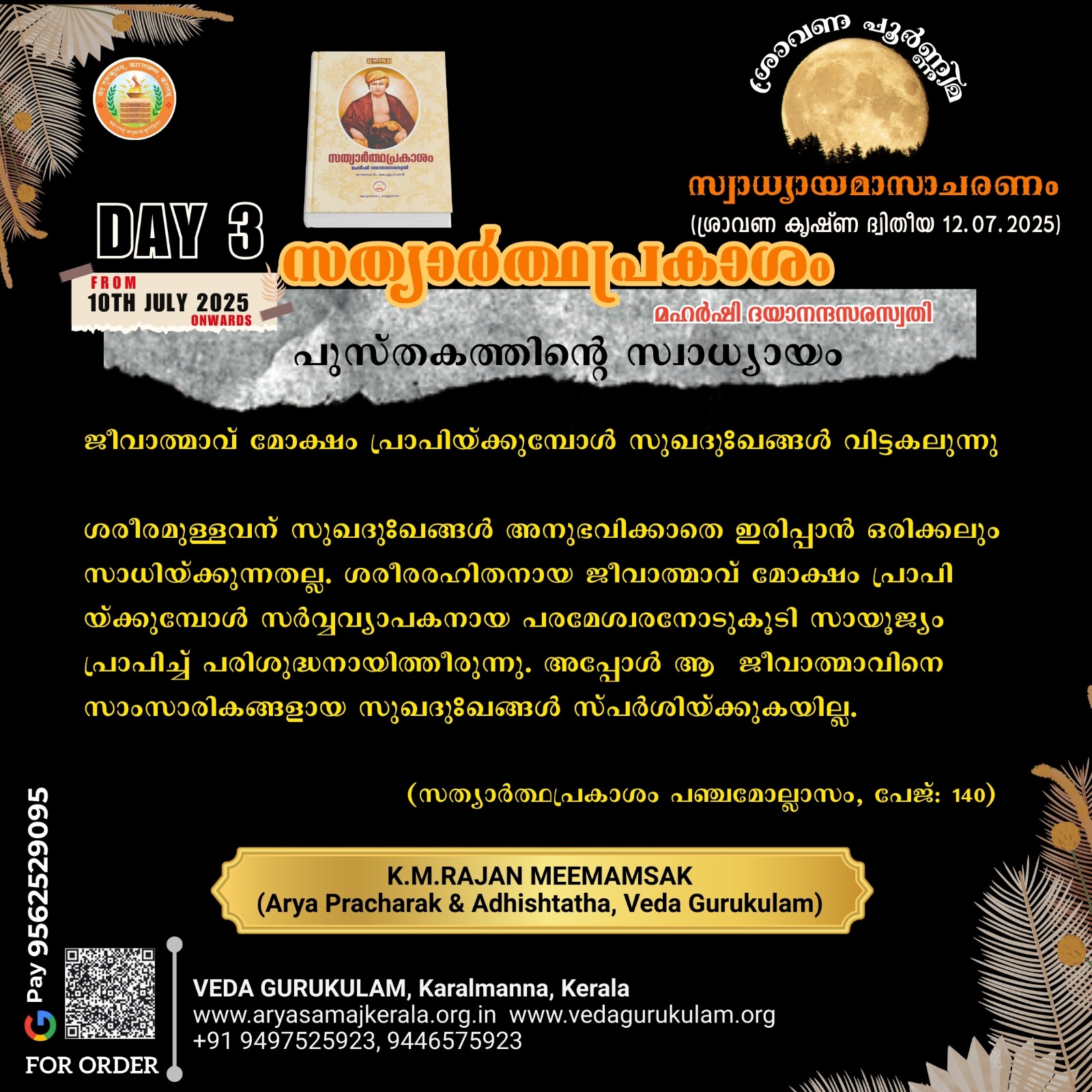 സത്യാർത്ഥപ്രകാശം സ്വാധ്യായം – മൂന്നാം ദിനം (ശ്രാവണ കൃഷ്ണ ദ്വിതീയ- 12.07.2025)
