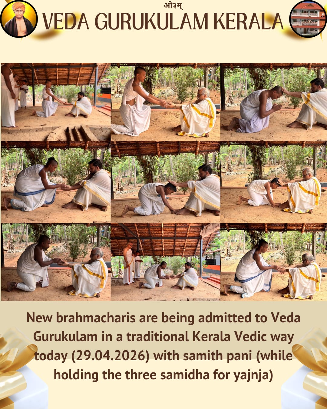 ๐Ÿ™ New brahmacharis are beiing admitted to Veda Gurukulam in a traditional Kerala Vedic way today (29.04.2026) with samith pani (while holding the three samidha for yajnja)