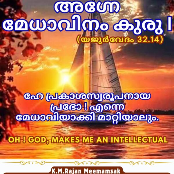 വേദസന്ദേശം Blog Veda Sandesam October 4, 2024October 4, 2024 Veda Gurukulam അസ്മേ ശ്രവാംസി ധാരയ l(സാമവേദം) അല്ലയോ സോമ ! ഞങ്ങൾക്ക് യശസ്സ് നൽകിയാലും. O SOMA ! MAY GIVE US HONOR