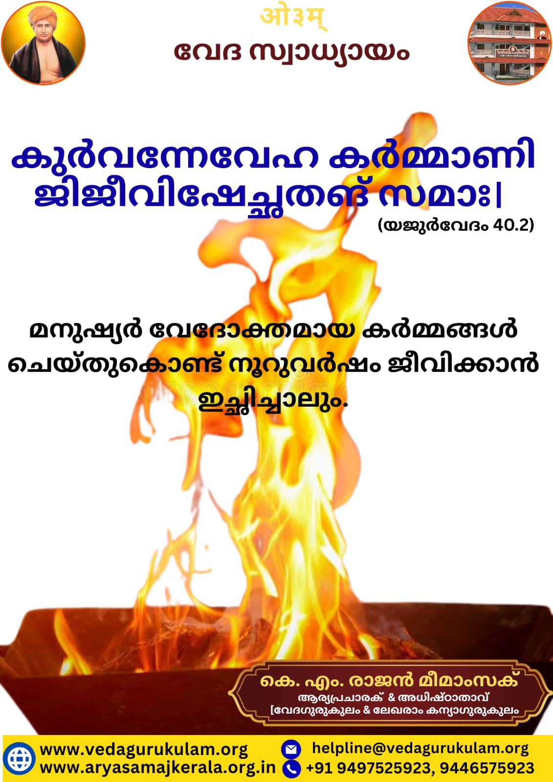 മനുഷ്യർ വേദോക്തമായ കർമ്മങ്ങൾ ചെയ്തുകൊണ്ട് നൂറുവർഷം ജീവിക്കാൻ ഇച്ഛിച്ചാലും.